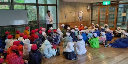 雨が小降りになったのでネイチャービンゴを決行します。カッパを着て準備OKです。