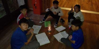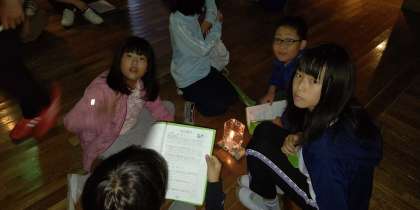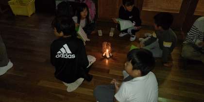 キャンドルを中心に今日のふりかえりをしています。