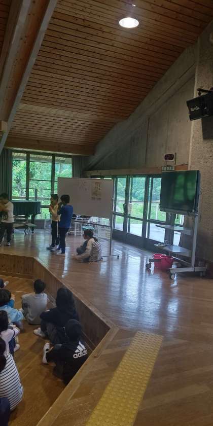 朝の集いで学校紹介をする順番をウーヤーゲームで決めています。