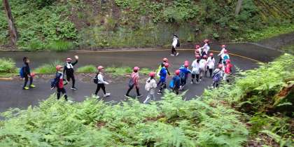 山道を歩き、休憩ポイントに着きました。