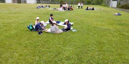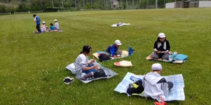 グランドでお昼ごはんです。