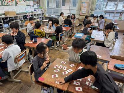 かるたや、並び替え、ミッシングゲームを通して、アルファベットに慣れ親しむ様子が見られます。