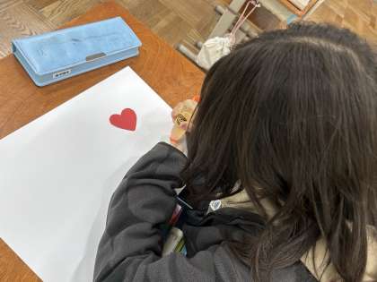 手に入れたカードを並べて貼って、素敵なカードを作ります。どんなカードができるかな。誰に送ろうかな。みんな楽しそうにカードを作っています。