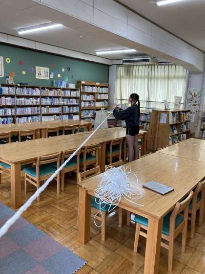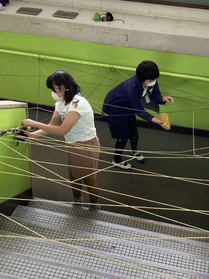 友だちと協力して、どんどんと糸が張り巡らされていくと、今まで知っている場所とは違う、不思議な空間ができあがりました。