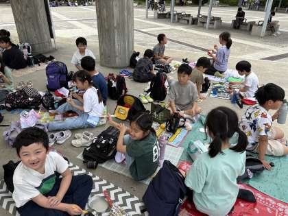 お昼は梅小路公園に移動してみんなで食べました。