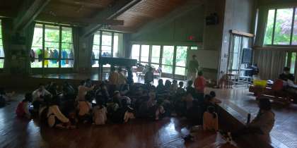 停電しています。電気が全て消えているわけではありませんが、少し暗いです。活動に影響はありません。館内ラリーが終わりました。
