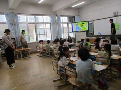 各教室ではそれぞれの学習をしていました。幼稚園保育園の先生も後ろから授業の様子をにこにことご覧になっていました。