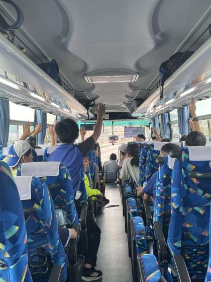 2組の乗っている2号車はリクリエーション係さんのなぞなぞでみんな楽しんでいます