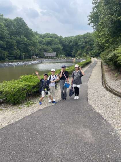 ミクロネシアの池の前で