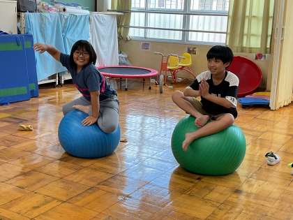 生活単元の時間にバランスボールを使って体幹トレーニングをしました。うまくバランスをとってみんなでどれだけ長くボールに乗れるか勝負しました。また、ボールを使ってストレッチ!体をのばしてすっきりしました。