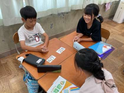 「ちょっとまって。むずかしい〜!あ!わかった!」「これは簡単や。くり上がりないもん。」などと言いながら頑張って暗算をしていました。