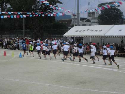 リングをバトンにして,1年生から3年生までが一生懸命バトンをつなぎました。