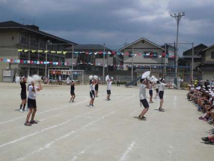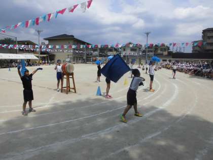 団長を中心に,オリジナルの応援歌を歌うなど,色ごとに工夫しながら運動会を盛り上げてくれました。