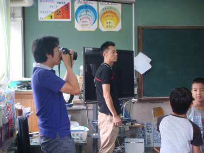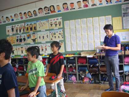そして,本校の外国語活動も取材をされていました。今日は,1年生と4年生の授業を観ておられました。