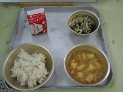 今週の月曜日まで山の家での宿泊学習に励んでいた5年生にとっては,久しぶりの給食です!