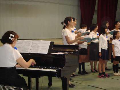 5名の子どもたちが,PTA方々といっしょに歌っています。