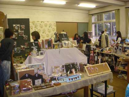 手作りの品物コーナーでは,手の込んだもの,かわいらしいものなどに見入ってしまいとってもほしくなってしまいました。