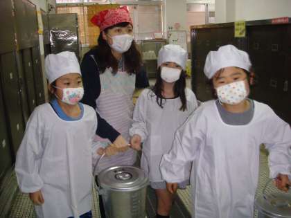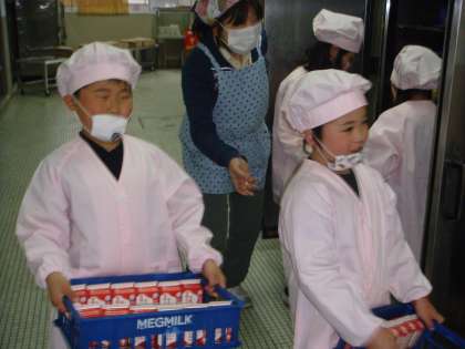 お当番の子どももはりきって給食室のホールに来ていました。