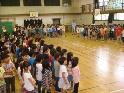 最後に,全校の歌です。歌っている子どもたちもとっても楽しそう。体で音楽を楽しんでいました。