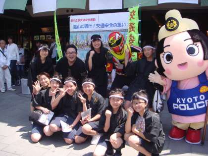 最後は,京都ポリスのゆるキャラの「みやこちゃん」と部活動の子どもたちと記念撮影です。