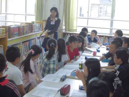 図書館支援員の新納先生から図書館の使い方の指導をしていただきました。本の分類や,返却場所について再確認しました。本の整理整頓を心がけ,有効的に図書館を利用できるといいですね☆