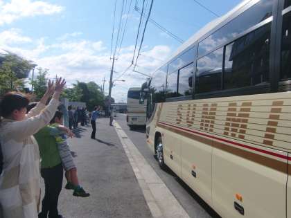 今日から修学旅行です。出発式を終え,元気に出発しました。