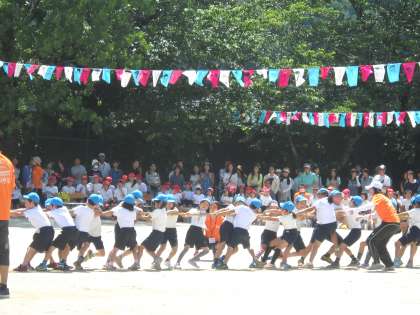 高学年のエントリー種目 綱引きです。力のこもった熱戦でした。