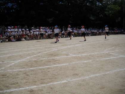3年の徒競走 80メートル走です。みんなからの声援をうけて力いっぱい走っていました。