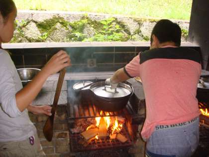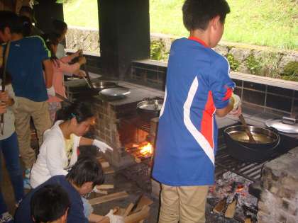 野外炊事でカレーライスの献立でしたが,おいしく出来上がりました。