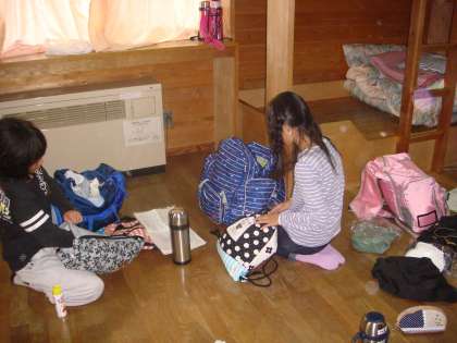 そして,朝6時に起床です。歯磨きをして,荷物整理をしました。お布団は,きちんとたたみましたよ。