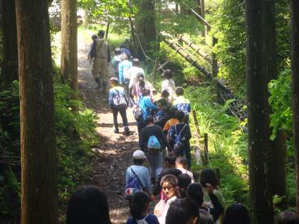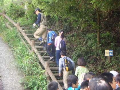 クライミングのあとは,自然観察をさせていただきました。こちらの所員の「キーパー」という方に山の家の自然の説明を聞かせていただきながら散策していきます。
