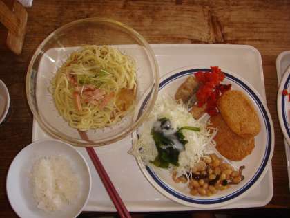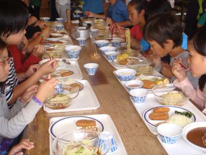 お昼ご飯は,選べます。1日目の野外炊事でカレーライスを作ったので,冷やし中華を選んだ子どもたちが多かったです。そして,副食は,バイキングですから,またまた食べてしまいます。