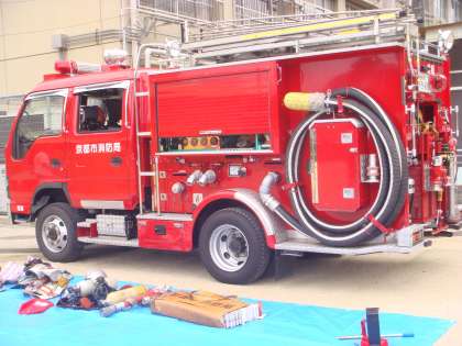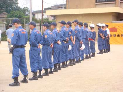 救急訓練,消火訓練そして,大人のための「社会科見学」と題して消防士体験,防火衣着装体験ができるようになっています。
