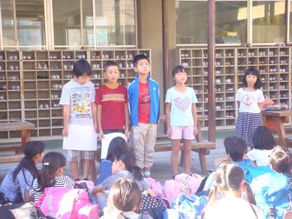 9月14日(月)4年生は,三重県志摩市にある「みさきの家」に向けて出発しました。7:50に出発式を行いました。
