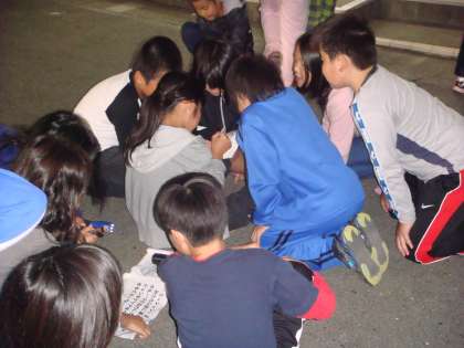 子どもたちは,このナイトハイクを怖がる前にコースを迷い,グループでもめにもめていました。決してけんかをしているのではありません。
