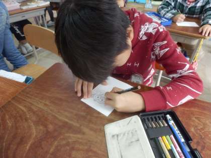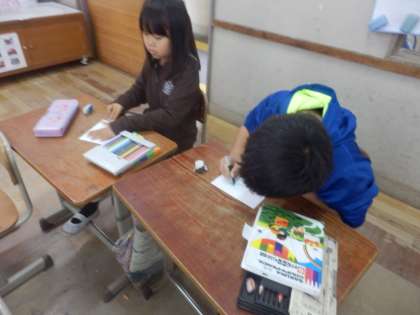 今日は国語の時間に年賀状作りをしました。出来上がった年賀状は,西郵便局に飾ってもらえます。来年の干支,さるをメインに思い思いのすてきな年賀状が出来上がりました。