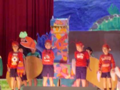 2年生「ひょうたんいけはおおさわぎ」です。かわいい衣装と歌声でとてもにぎやかなひょうたんいけでした。