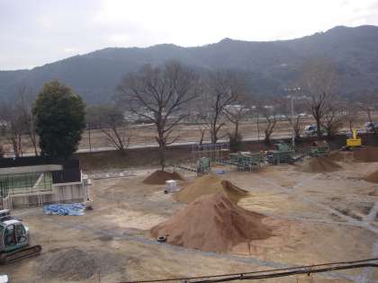 12月から始まっている運動場改修工事ですが,順調に進んでいます。子どもたちは,ありあまっているエネルギーをどうしたものかと思っているようですが,大きなトラックが通るときには,しっかりと注意を聞き,移動をしています。