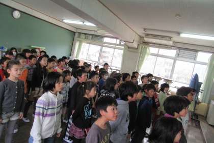 担任の先生からのお話や理科の小林先生のギター演奏,そして最後にみんなで「ビリーブ」を歌いました。