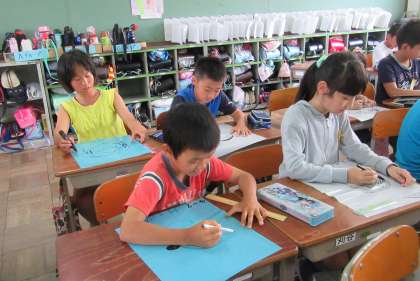 運動会で飾る万顔旗を描きました。自分の顔の特徴を考えながら,描きました。運動会当日も,自分の万顔旗がどこに飾ってあるか楽しみですね。