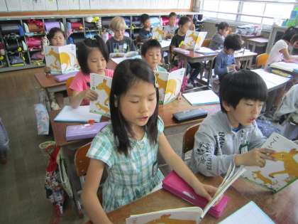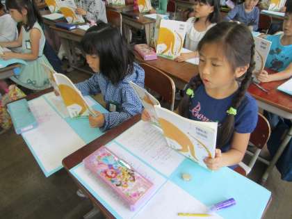 国語科では,『たんぽぽのちえ』を学習しています。時をあらわす言葉を見つけ,その時のたんぽぽの「ちえ」と「わけ」を読みとっています。