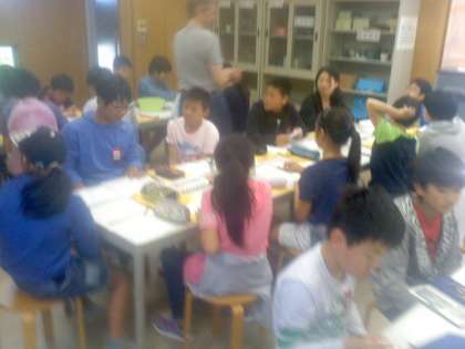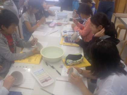 下絵がかけたら、絵の具を塗っていきます。色を混ぜないように、気をつけて…。