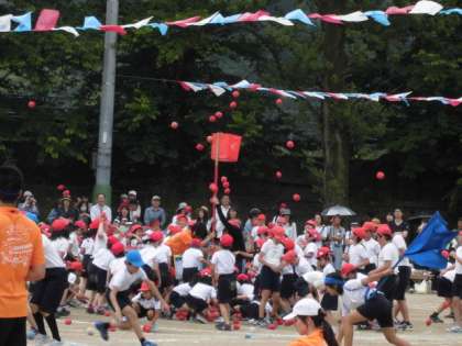 恒例の玉入れです。得点が大きく勝敗を左右します。