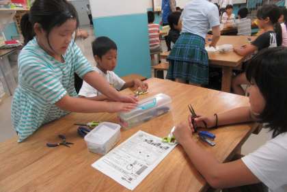 「工房」の学習では,「ローム」という企業の方にお世話になり,半導体を使ったLEDライトの工作をしました。