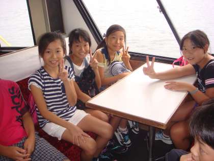 船に乗りながら,「伊勢志摩サッミット」が開かれたホテルの場所や,真珠のお話などを聞かせていただきました。