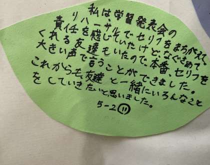 学習発表会のことや、普段の学校生活のことを思い出しながら振り返りました。