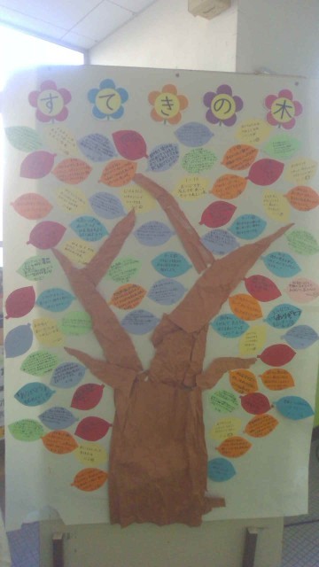 12月の人権目標は「気配りのバトンをつぎへとつないでいく」です。この目標を意識して過ごした12月をふり返り、各学級で1枚の葉にまとめました。「大丈夫?どうしたの?って聞いてもらえると安心できる。」「一緒にやろう!と言ってもらえると嬉しい。」「自分も気配りができる人になりたいな。」とふり返っていました。これからも一人一人が相手を思いやる気持ちや行動を大切にできるといいなと思います。
