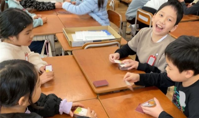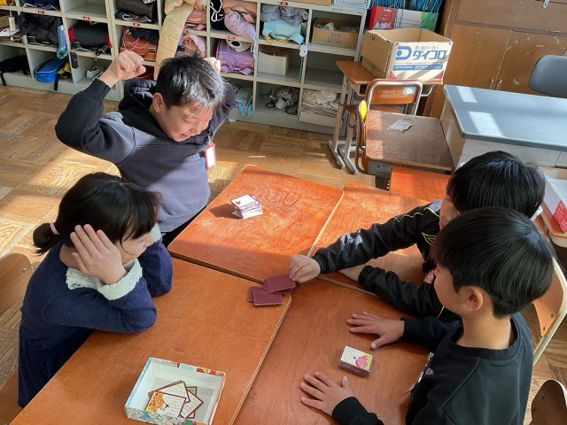 お正月遊びでよく登場する百人一首も、短歌と同じ「五・七・五・七・七」のリズムであることに気付き、青札百人一首大会をしようということになりました。