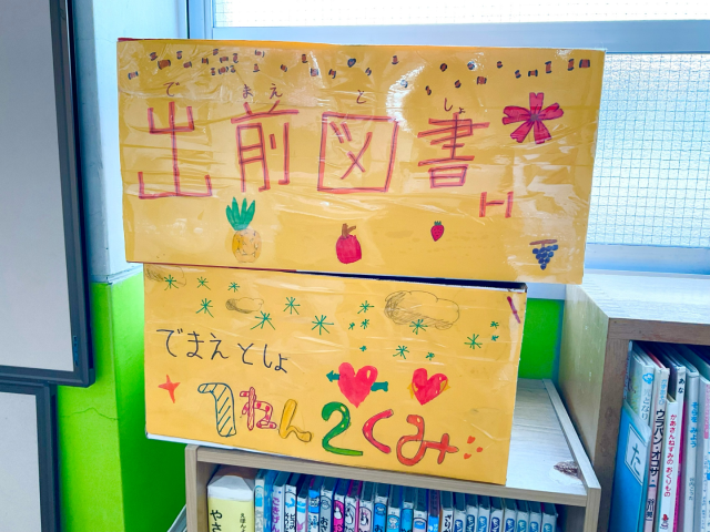 みんなにもっと本を読んでもらうにはどうしたらいいかを考えて、図書委員がセレクトした本を定期的に数冊ずつお届けする「出前図書」に取り組んでみることになりました。