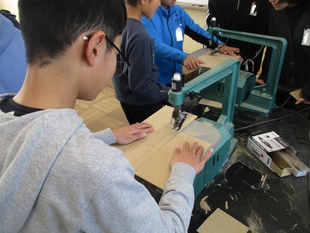 電動のこぎりも、版画の時に使ったので慣れており、すいすいと切り進んでいました。